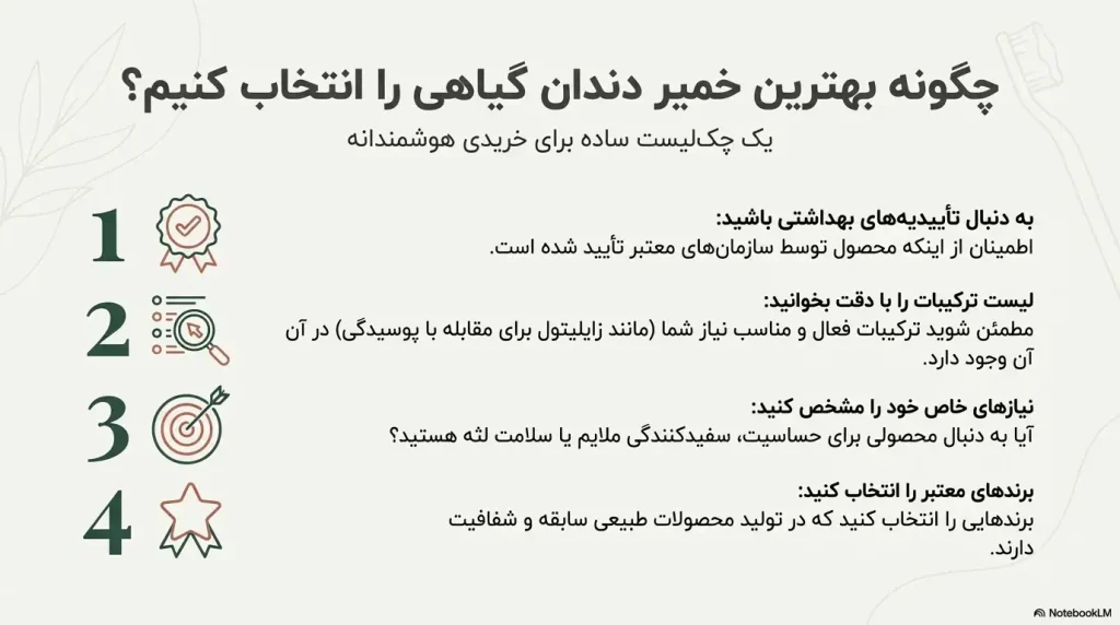 برای انتخاب یک خمیر دندان گیاهی مناسب، به نکات زیر توجه کنید: